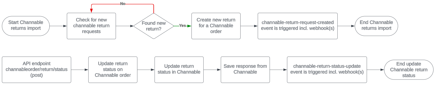 Core-commerce has broad support for managing returns on orders. Base idea is that every unique returned item (SKU), can be added to a return through the OMS API.
